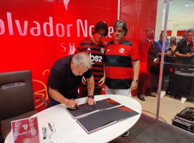 "Zico, Zico, Zico". O frisson que tomou conta do Salvador Norte Shopping na tarde desta quinta-feira (4) deu o tom do que o momento representava para os inúmeros torcedores que compareceram ao local. Enquanto o maior ídolo da história do Flamengo não aparecia, os fãs faziam a festa, ansiosos para o encontro marcante. O Galinho veio à capital baiana para uma noite de autógrafos e fotos, exclusivos para quem adquiriu o livro "A História de todos os gols de Zico".