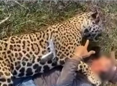 O homem atirou na onça-pintada e publicou um vídeo abraçado com o animal nas redes sociais. Ele alegou que o felino teria se alimentado de bezerros criados na sua fazenda.