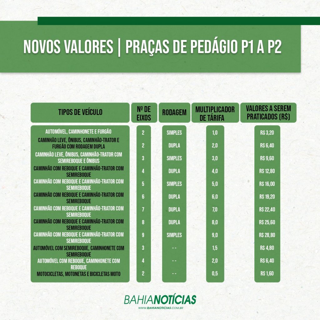 A informação foi confirmada ao Bahia Notícias nesta sexta-feira (7) pela concessionária ViaBahia, que administra os trechos no estado. Conforme a concessionária, o aumento nos valores foi aprovado nesta quinta-feira (6) pela Agência Nacional de Transportes Terrestres (ANTT).