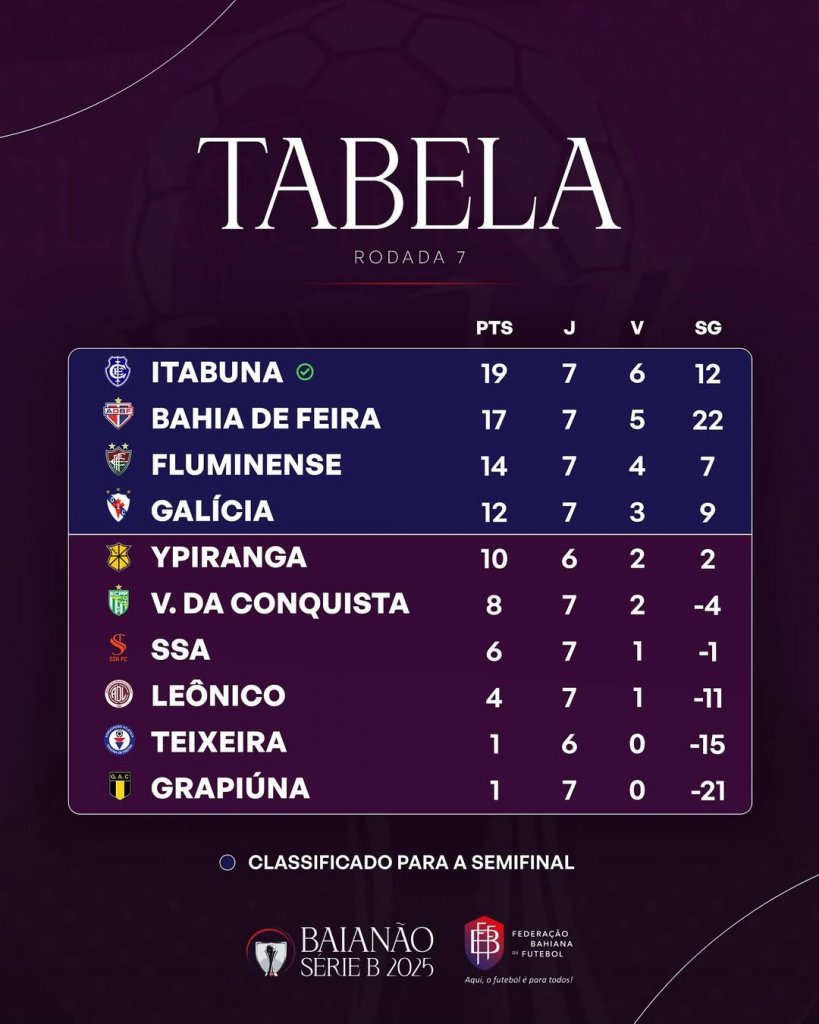 Quem também segue forte na luta por uma vaga nas semifinais é o Fluminense de Feira. A equipe bateu o SSA FC por 2 a 1 e chegou aos 14 pontos, ocupando o terceiro lugar. O Galícia fecha o G-4 com 12 pontos, após uma sonora goleada por 8 a 1 sobre o Leônico no estádio Jodilton Souza. A equipe acumula três vitórias, três empates e uma derrota.