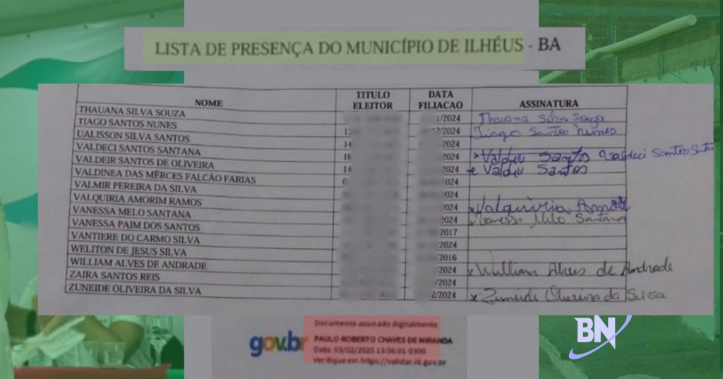 Denúncia aponta coleta de dados vinculada a benefícios sociais e assinaturas falsificadas em processo da Rede em Ilhéus